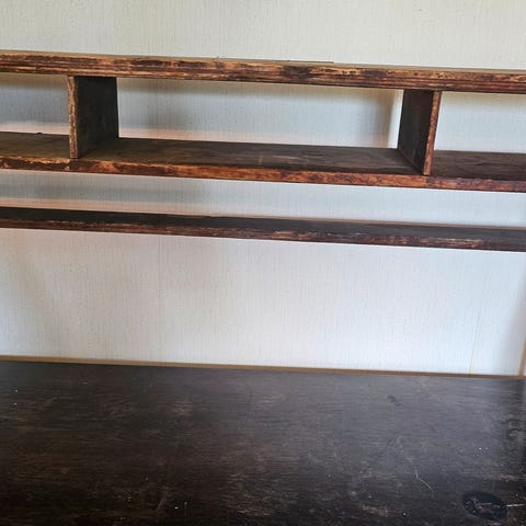Itse valmistettu kestävä hylly/taso ja 2kpl paarijakkaroita. Kansilevy massiivitammea ja etukoristelistat myös, muutoin mäntyä.