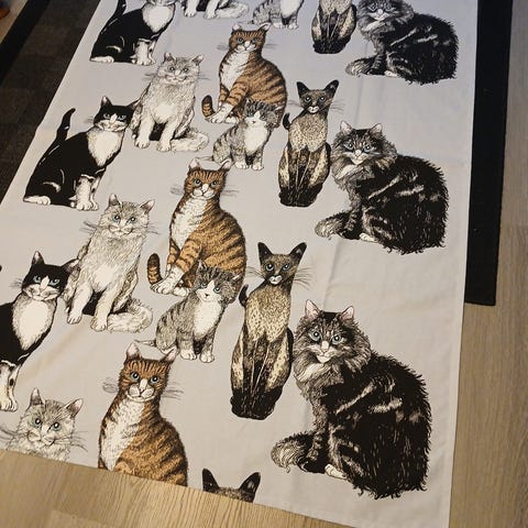 Vallilan kiva kissakuosi. Täyskokoinen sivuverho.