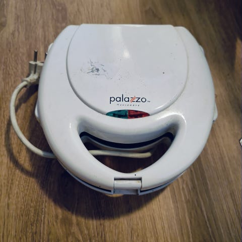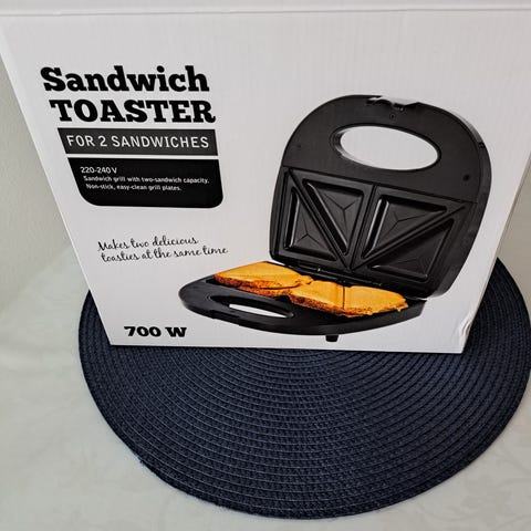 Toimiva voileipä grilli punainen ja tekee simpukkamaisen kuvion leipään nouto Turengista