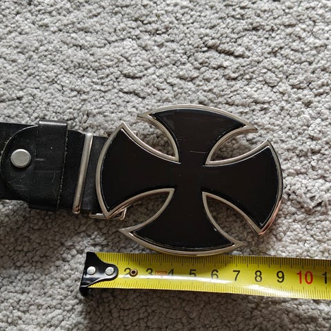 Siisti ja hyväkuntoinen musta nahkavyö,100cm, jossa komea kotkanpääsolki. Käy hyvin lahjaksi!