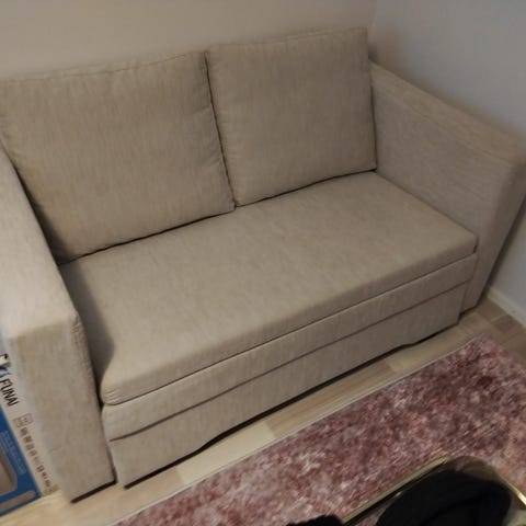 Myydään vähän käytetty 104cm leveä vuodetuoli. Nukkumaleveys 100cm. Kääntyy helposti sängyksi. Koirakoti, koirat ei kylläkään ole olleet tuolilla, muutama karva tulee silti varmasti mukaan. Kangas on siisti ja kokonaan musta, kuvassa näkyy lampun heijastus. Toivotaan nopeaa noutoa.