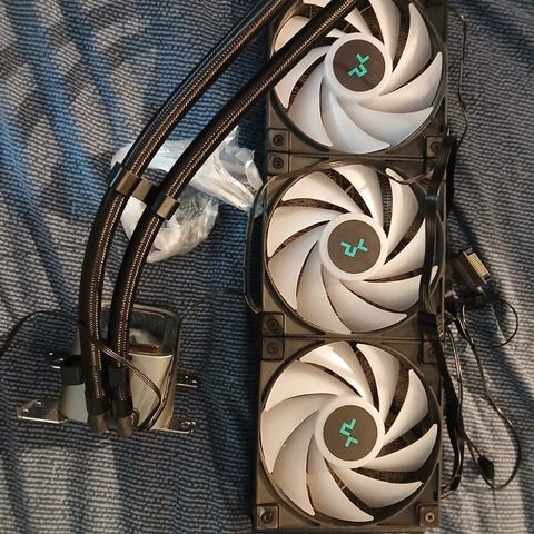 Deepcoolin näytöllinen prossujäähdytin. Jotenkin kuvittelin tämän hieman pienemmäksi niin ei sopinutkaan omaan koteloon. Tämä siis 120mm tuulettimella ja kokonaisuudessaan jotain 160mm korkea. Mukaan amd yhteensopivat kiinnikkeet.