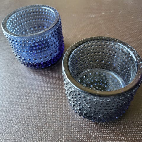 Iittala Kastehelmi tuikkukippo, kaksi kirkasta ja yksi tummanharmaa. Erinomainen kunto. 10€/kpl.