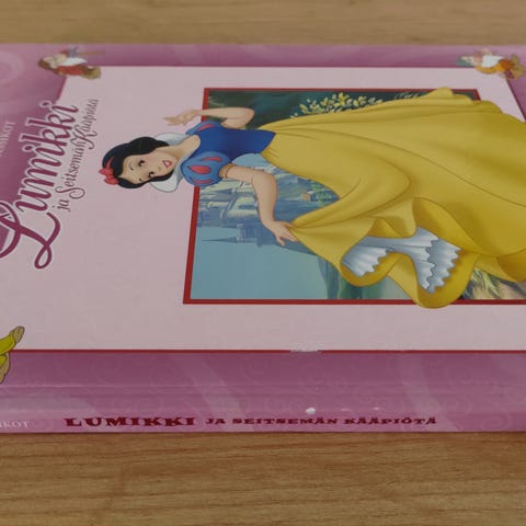 Lumikki ja seitsemän kääpiötä. Kirja on mummolassa, uuden veroinen. Eläimetön ja savuton talous.