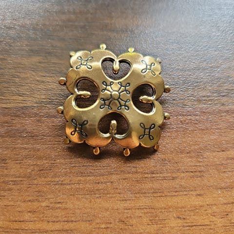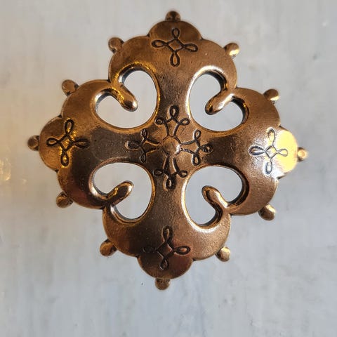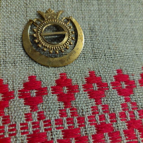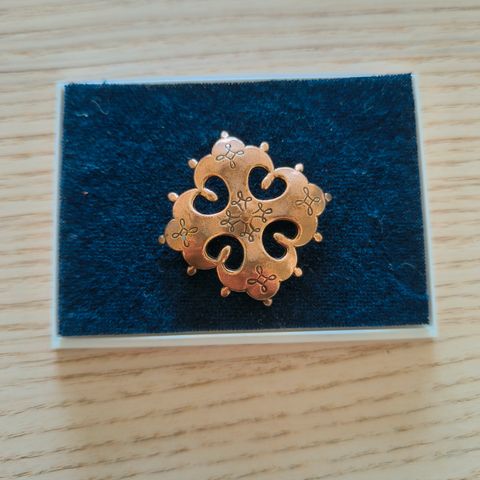 Kalevala Koru - Raja-Karjalan risti - rintaneula - pronssia. Alkuperäinen rasia. Kunto hyvä. Vintage koru, kaunis rintaneulana, hattukoristeena tai huivin kiinnikkeenä. Maksu käteinen tai MobilePay. Postikulut pakettina 6€.