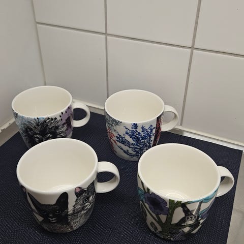 Myydään erittäin hyväkuntoiset Vallila Rehti sarjan Aamu-usva mukit 6kpl. Vuoden 2017 mallistoa. Olleet vähäisellä käytöllä pääsääntöisesti vieraskuppeina. Itse en löydä virheitä enkä selkeitä käytönjälkiä. Lisää kuvia saa pyydettäessä ja kunnon saa tarkastaa noudon yhteydessä. Kissatalous.