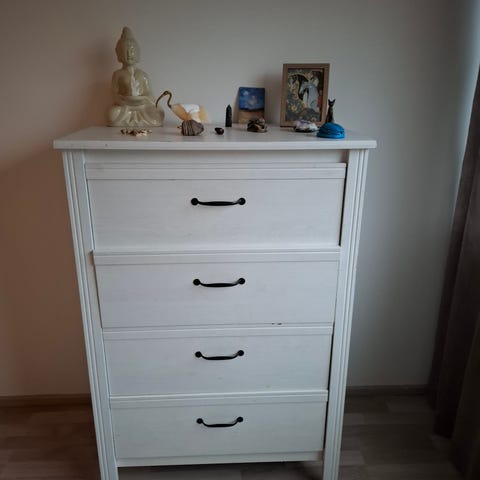 4 kulahtanutta mutta vielä vaikka varastossa toimivia laatikostoja. Kahdessa näissä tavarat laatikoissaan jotka tulee mukaan.