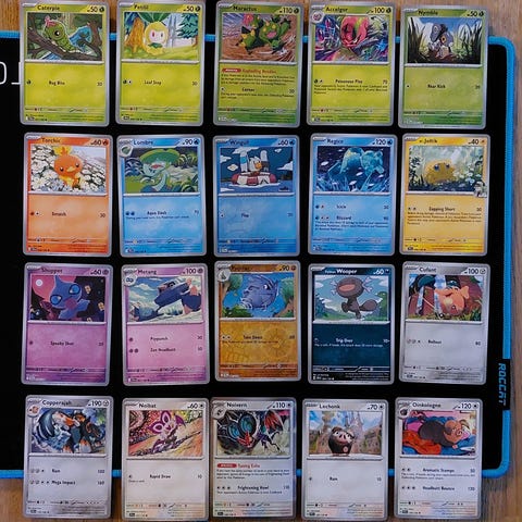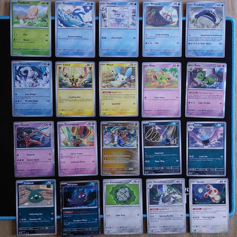 Myydään Obsidian Flames Pokemon kortteja 20kpl. Hinta yhteensä 9,90e tai yksittäin ostettuna hinnat alla.