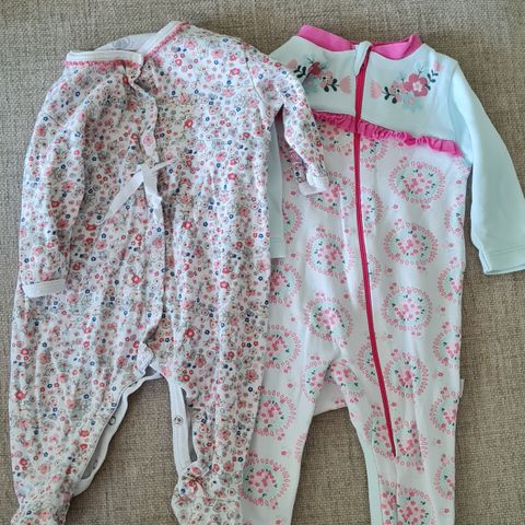2 kpl oloasuja/yökkäreitä kesään. Norsuvaatteen koko 68, mutta meillä käytetty yhtä aikaa koon 62 kanssa. Hinta erikseen: norsukuvioinen 2e, muumi 3e.