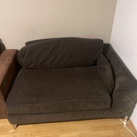 Kolmen istuttava vuodesohva. Pari tahraa sohvassa. Päällys kankaan saa pois ja voi pestä.