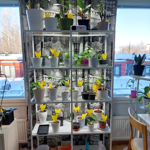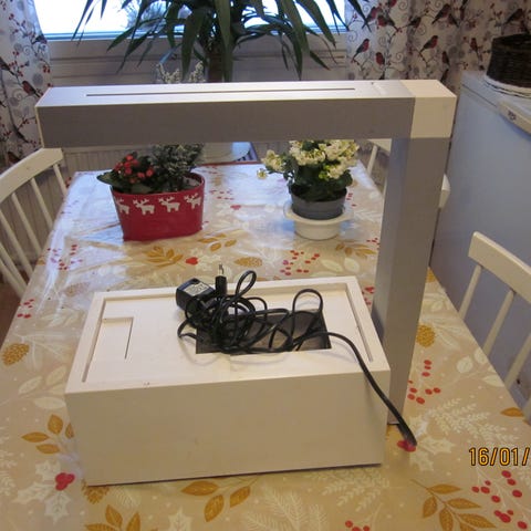 Käytetty kasvihyllyssä. Kuvassa juuri virittämisen jälkeen pienten kasvien kanssa, kasvoivat tuosta pian hurjasti. Oli siis erittäin toimiva.