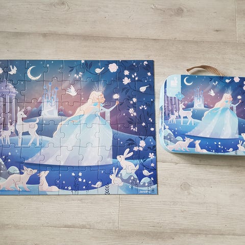 Jonad lasten yllätyspalapeli / jättipalapeli, 20 palaa. Palapelissä on avattavia luukkuja ja ikkunoita, joista osa on taittunut, mutta ovat edelleen muuten ehjiä. Muutoin on oikein siisti.