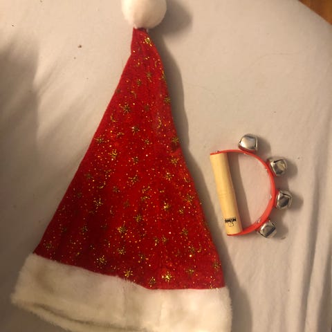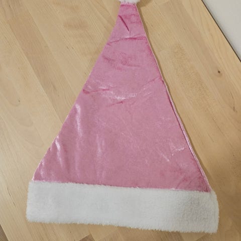 Kuvan kolmella tupsulla varustettu, vähän erilainen lakki jouluun. Väri on oikeasti tummemman punainen.