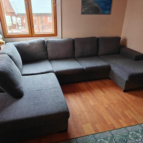 Kolmen istuttava sohva plus rahi. Pari tahraa. Päällys kankaat saa pois ja voi pestä.