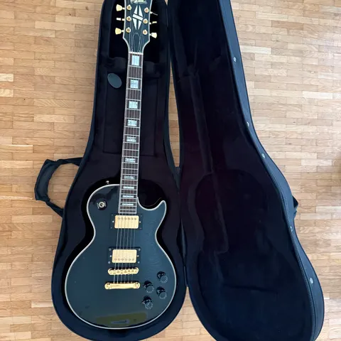 Mukaan tulee kuvassa oleva Les Pauleille sopiva kovakantinen kantolaukku.