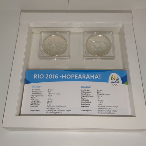 Sisältää pääosin suomalaisia urheilu- ja olympia-aiheisia hopearahoja