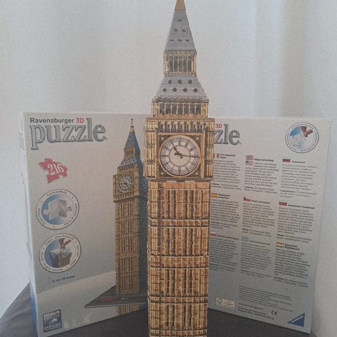 Mitat: Valmis palapeli on kooltaan noin 18 x 18 x 52 cm (7 x 7 x 20 tuumaa).