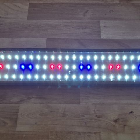 Hyväkuntoinen ja täysin toimiva akvaariovalo. Säädettävä 55-70 cm välillä. On tosi hyvä akvariokasveille. Valot himmennettävä tarpeen mukaan.