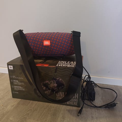 JBL xtreme 3Bluetooth-kaiutin, musta väri. Mukana kantokahva/remmi. Toimii hyvin, ei pelkää vesisadetta. Alkuperäinen laturi puuttuu mutta muuten tästä jollekkin oiva kaiutin.
