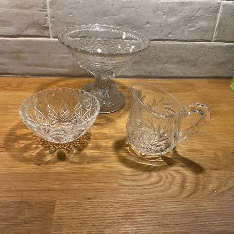 Kauniit ja ehjät lasiset Karamelli astiat. Hintapyyntö yht. 13 e.