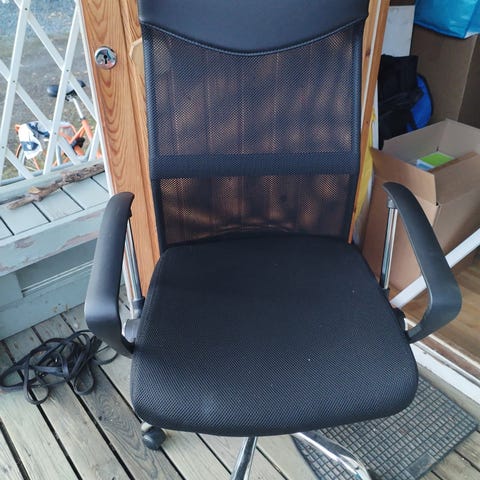 Myydään Ikean Renberget toimisto/pelituoli. Kaikki toimii, ei ole repeämiä missään. Jotain pientä käytön jälkeä. Väri musta ja osittain jotain nahkan tapasta ja osittain tommosta verkkokangasta. Tuolissa korkeussäätö ja nojaamisominaisuus.
