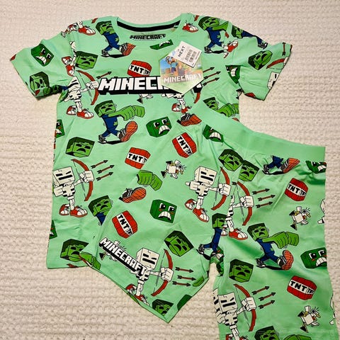 Minecrat teemainen shortsipyjama, shortsit ja t-paita. Koko 128. Uusi.