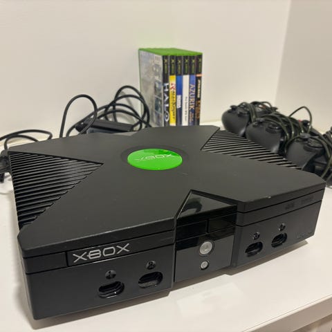 Xbox orginal retro peli setti piuhat 3 ohjaimet ja scartti virta piuha sekä 8 kpl pelejä.mieluiten nouto voin postitaa kuluja vastaan ei diilillä.