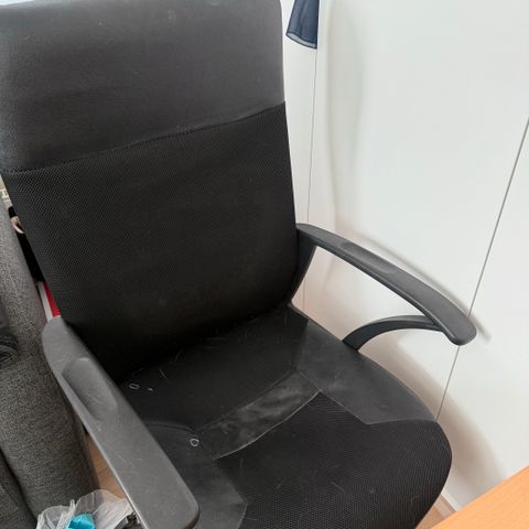 The wheels don't spin very well anymore, but otherwise in reasonable condition. Very adjustable (armrests, height and backrest adjustable). Cat scratches (not very visible) and a little residue/cat hair, but mostly clean.