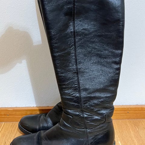 Koon 35 nahkaiset ruskeat saappaat joissa flanellivuori. Ihanan pehmeää nahkaa jossa helposti tosin näkyy käytön jälki. Ostettu käytettynä mutta ei sopinut oikein minun jalkaani joten jääneet vähälle käytölle. Koirakoti.