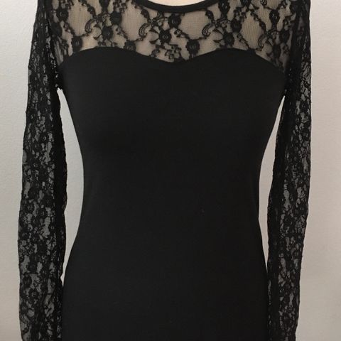 Musta pitsipaita, jossa huivikaulus. Koko: S( sopii myös M kokoa käyttävälle).