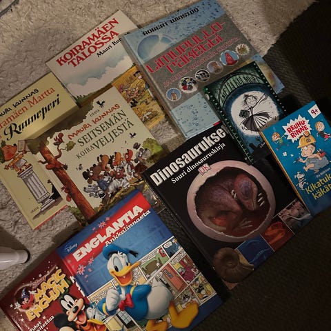 Myydään iso kirjasetti. Suurin osa meille uutena tulleita, osa käytettynä ostettuja. Kaikki siistissä / erinomaisessa kunnossa