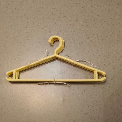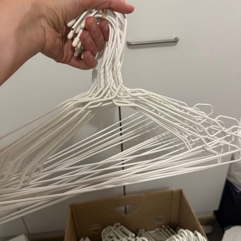 Henkareissa sellanen kumisen oloinen pinta, jonka ansiosta vaatteet pysyy hyvin henkarissa.