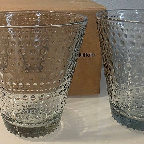 Myydään kaksi Kastehelmi-lasia, koko 30 cl eli korkeus noin 9,7 cm. Käytännössä kuin uudet, on ainoa pari kaapissa niin jäänyt käyttämättä lasipaljoudessa... Myyn kummatkin kerralla, mieluiten nouto Veisusta Tampereelta. Hintapyyntö yhteensä 15 e.