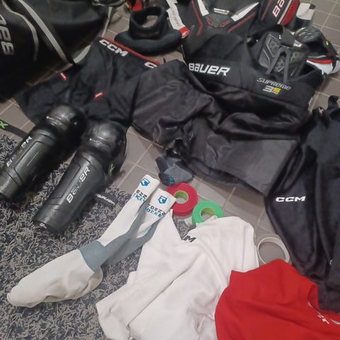 Koko on Juniori, meillä on ollut hoikalla pelaajalla 150-160cm käytössä. Kaikki varusteet on ollut yhdellä käyttäjällä.