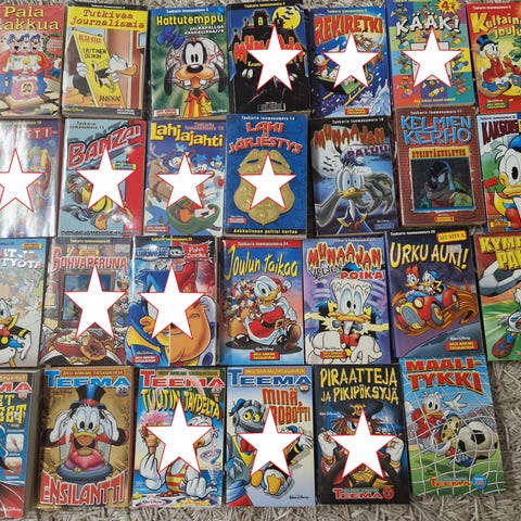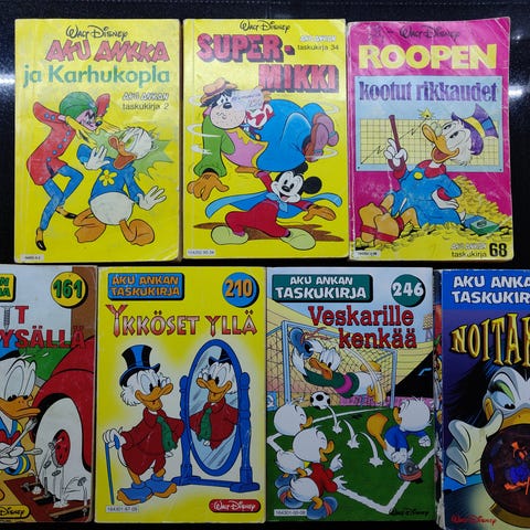 Akun Teema taskareita 24 kpl numerot 7, 11, 12, 13, 14, 15, 21, 22, 23, 25, 26, 29, 30, 31, 36, 37, 39, 40, 43, 45, 46, 49, 50 ja 51. 1,50€ kpl tai 10 kpl 12,00€.