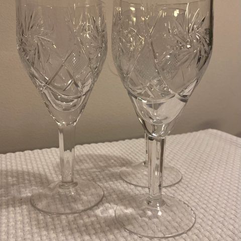 Myydään setti laseja. 6 kpl pieniä kristallilaseja (korkeus 7,5 cm). 2 korkeaa kristallilasia (korkeus 21 cm). 6 kpl viinilaseja, joissa valkea koristekuvio (korkeus 14 cm). Koko paketti yhteensä 10 euroa. Vain nouto.