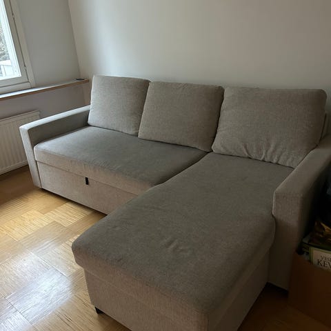 Sohvan selkänoja avautuu ja muuttuu sängyksi.