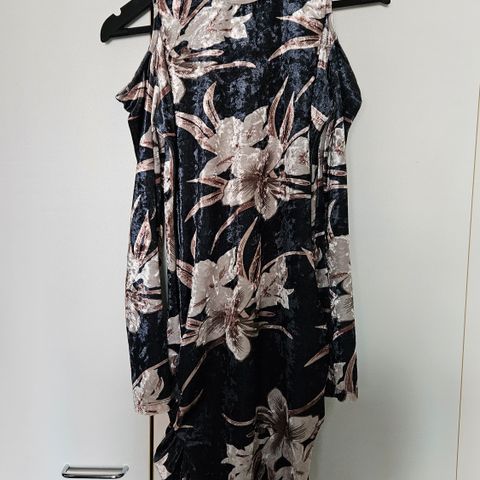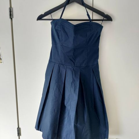 Moitteettomassa kunnossa oleva sininen kimallemekko. Puolipitkä, istuva malli, joustavaa kangasta. Koko merkitty M mutta vastaa enemmän S-kokoa.
