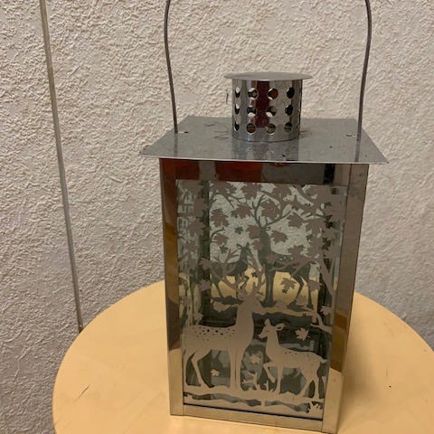 Tumman vihreä keraaminen kaunis lyhty. Koko 19x17 cm. Metalli sanka. Eläimetön ja savuton talous.