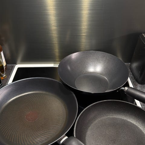 Myydään keittiövälinesetti. 2 kattilaa, joista isompi 5 litraa. Tefal wokkipannu (pieniä kulumajälkiä) + normaali paistinpannu (erinomainen kunto, vähän käytetty), molemmat 28cm halkaisijaltaan, eivät käy induktioliedelle. Fiskars veitsiteline + veitset, kokkiveitsesta kärki hieman vääntynyt, tuosta kuva.