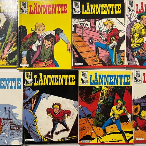 Lännentie sarjakuvia. 1977 no. 10 ja 1980 no. 2. Toisesta lehdestä sivuja hieman irti, mutta tallessa.