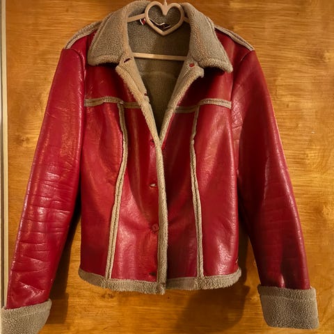 Punainen naisten takki, valmistettu polyesteristä, koko L. Takissa on pitkät hihat ja etutaskut. Sopii erilaisiin käyttötarkoituksiin ja tarjoaa kevyen suojan.