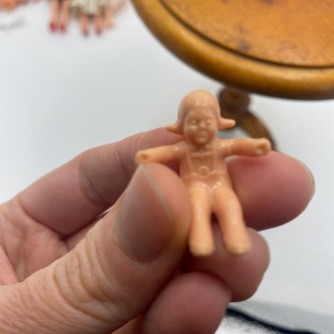 Myynnissä on vanha pieni nukke. Siisti. Pituus 8cm. Pk 2,75€