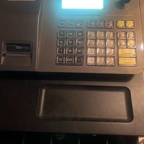 Kuvan kassakone viivakoodilukijalla, nyt 300€.