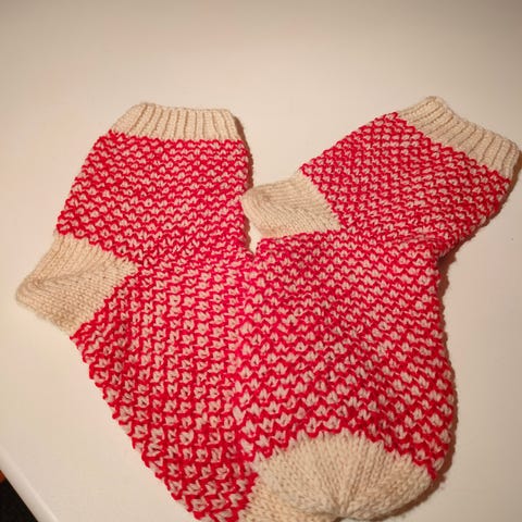 Lämpimät, joulunpunaiset/harmaat, käsinneulotut villasukat Nalle-lankaa. Koko 33-34. Nouto tai postitus. Voidaan muuttaa Toridiiliksi ja voidaan yhdistellä postikuluja jos ostat useamman tavaran.