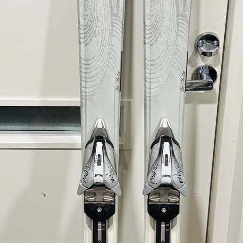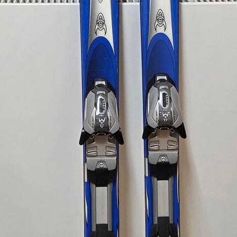 Naisten K2 Burnin Luv -laskettelusukset, joissa K2 Marker -siteet. Suksien pituus 146 cm.