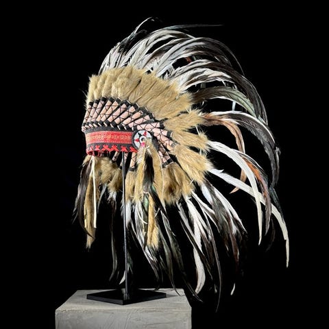 Remake intialainen päähine, joka on valmistettu oikeista höyhenistä.