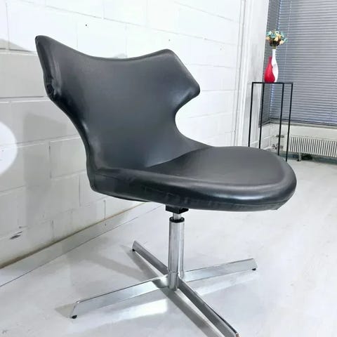 Käyttämättömiä, nahkaa oleva moderni, ruskea ”pallotuoli”. Siron rakenteen vuoksi sopii tilaan kuin tilaan, aina keittiöstä olohuoneeseen. Sirosta ulkonäöstä huolimatta tuoli on tukeva ja hyvä istua.