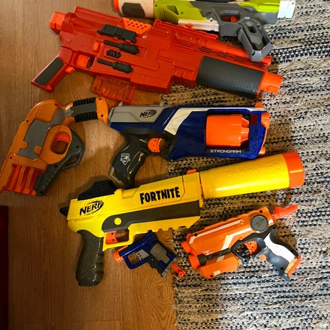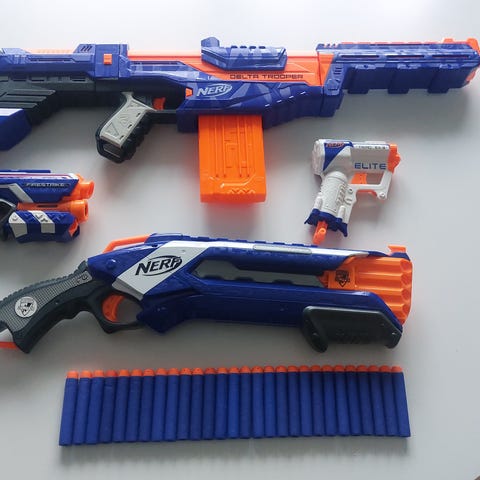 Läjä nerffejä 100e. Panoksia mukaan paljon.