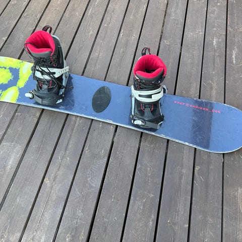 Salomon lumilauta crazy creek siteillä + monot. Pohjassa pieniä naarmuja ja käytön jälkiä, muuten ok kunnossa.